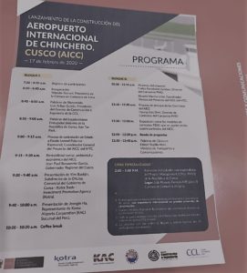 “En el 2018 hemos superado los 3.8 millones de pasajeros con lo cual prácticamente no podemos atender”, afirmó Mariño durante el evento denominado “Lanzamiento de la construcción del Aeropuerto Internacional de Chinchero, Cusco (AICC)”, organizado por el MTC y la Cámara de Comercio de Lima (CCL).